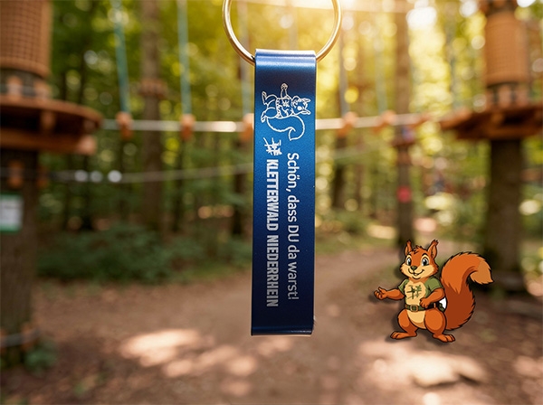 Dieser Schlüsselanhänger mit integriertem Flaschenöffner ist nicht nur praktisch, sondern auch ein tolles Erinnerungsstück an einen besonderen Geburtstag im Kletterwald.